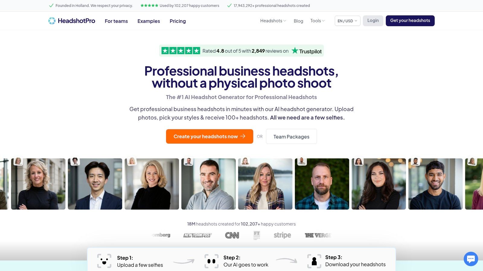 HeadshotPro is one of the best AI headshot tools specifically for business professionals and corporate teams. It excels at creating uniform, high-quality headshots perfect for LinkedIn, company websites, and professional branding. The platform requires users to upload several selfies, which it uses to train an AI model of their likeness before generating portraits.