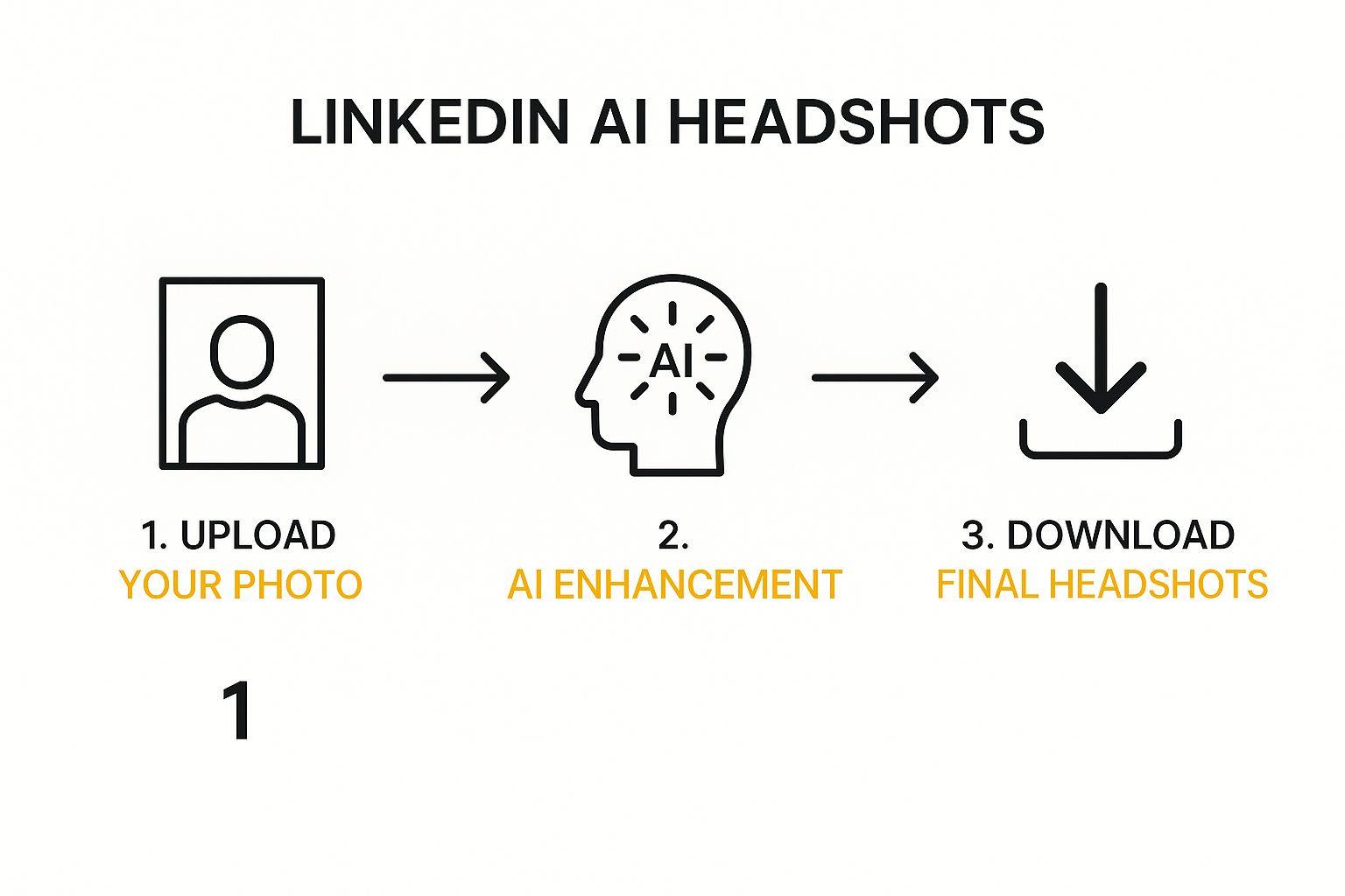 This image shows the three simple steps to get your AI headshot.