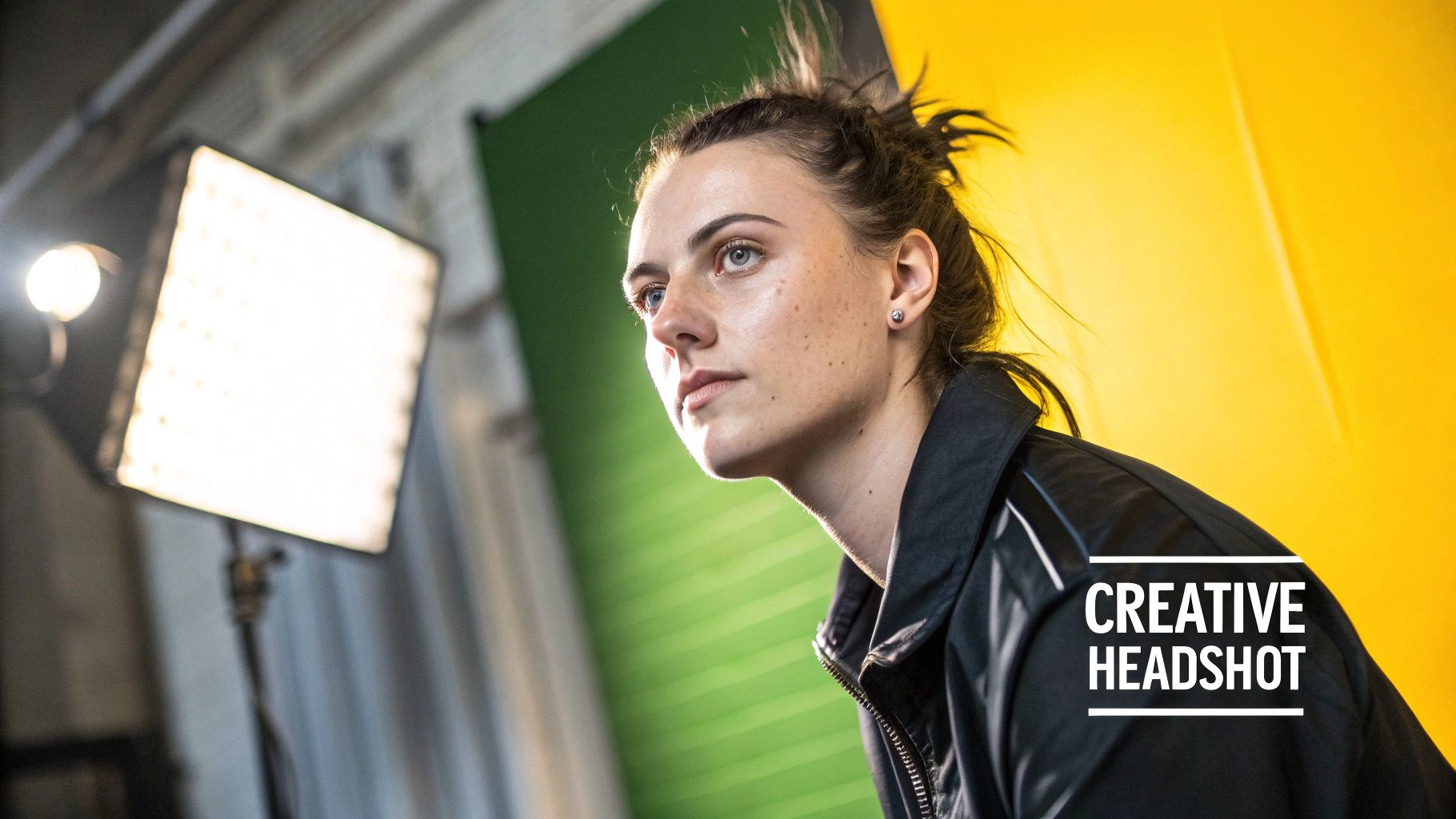 This approach is perfect for graphic designers, artists, and creative directors. A creative headshot acts as a small portfolio piece, offering a glimpse into your brand and aesthetic. It shows how you think, making it one of the most impactful linkedin headshots examples for a specific audience.