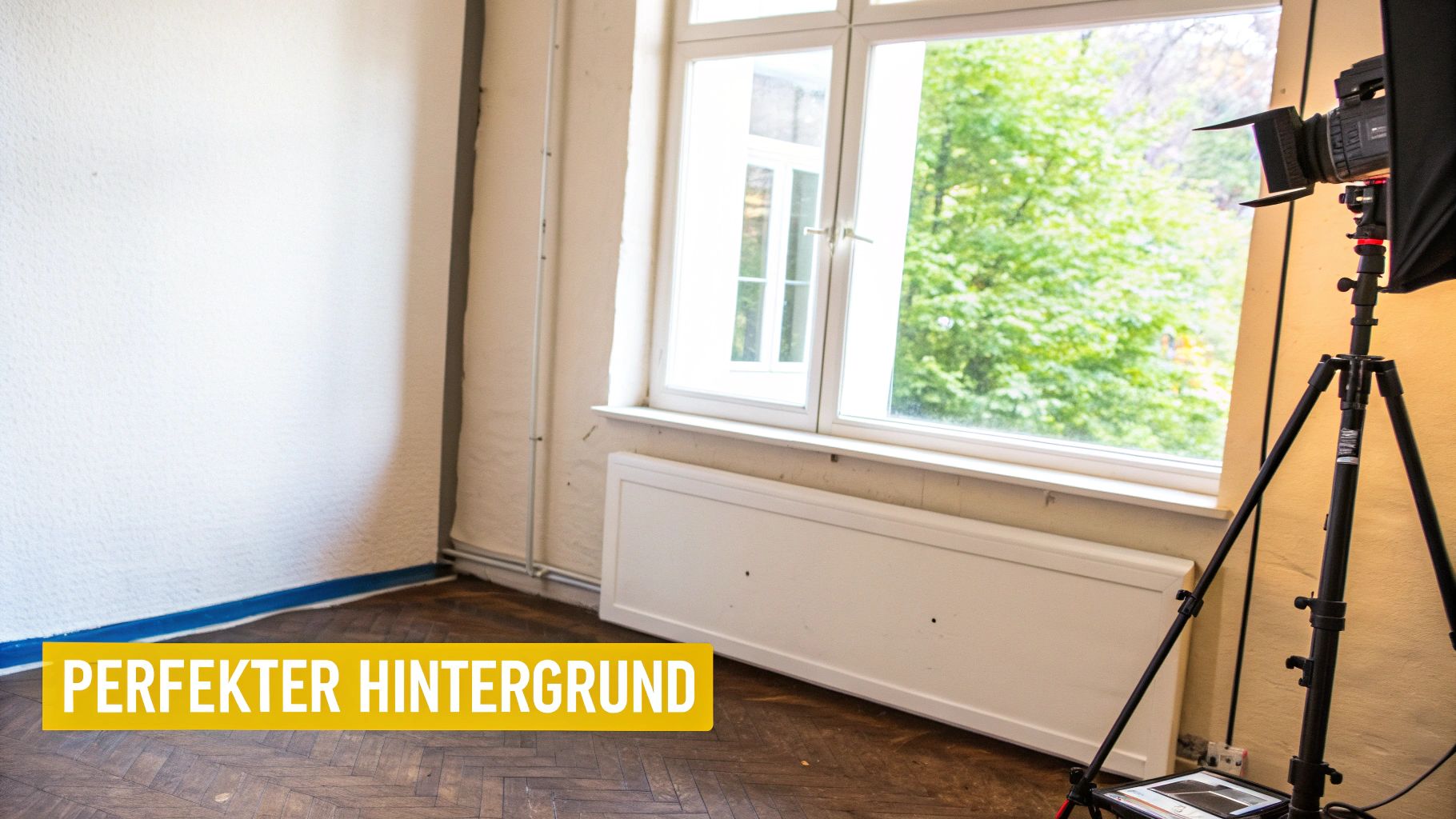 Hintergrund | Neutral und einfarbig (z. B. eine leere Wand) | Unruhige Muster, unaufgeräumte Zimmer, grelle Farben |