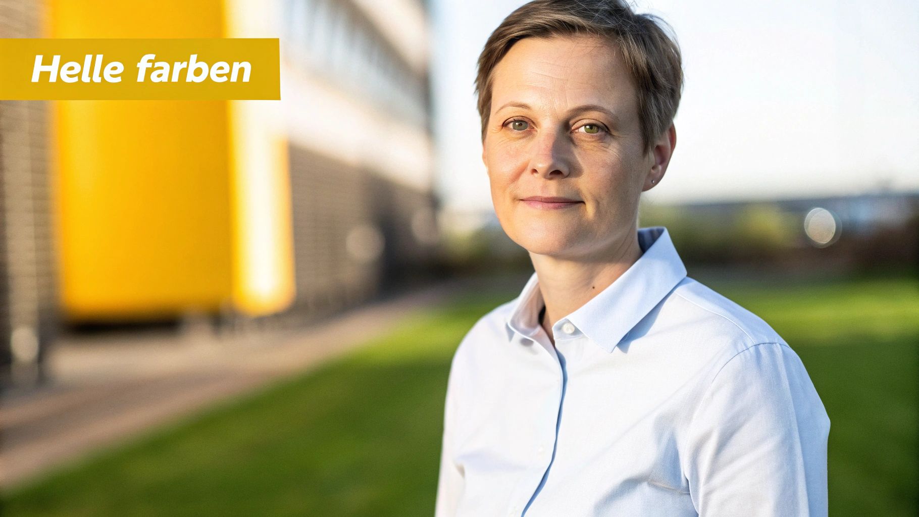 Die gezielte Abstimmung der Farbtemperatur Ihres Outfits auf Ihren persönlichen Farbtyp (basierend auf Haut-, Haar- und Augenfarbe) schafft eine harmonische und schmeichelhafte Gesamtwirkung. Dieses Prinzip geht über die reine Farbwahl hinaus und berücksichtigt, ob eine Farbe eher warm (mit gelben, orangen Untertönen) oder kühl (mit blauen, violetten Untertönen) ist. Eine korrekte Abstimmung sorgt dafür, dass Ihr Teint strahlt, Sie gesund aussehen und die Farben für Ihr Outfit beim Businessfoto nicht mit Ihnen konkurrieren, sondern Sie perfekt ergänzen.