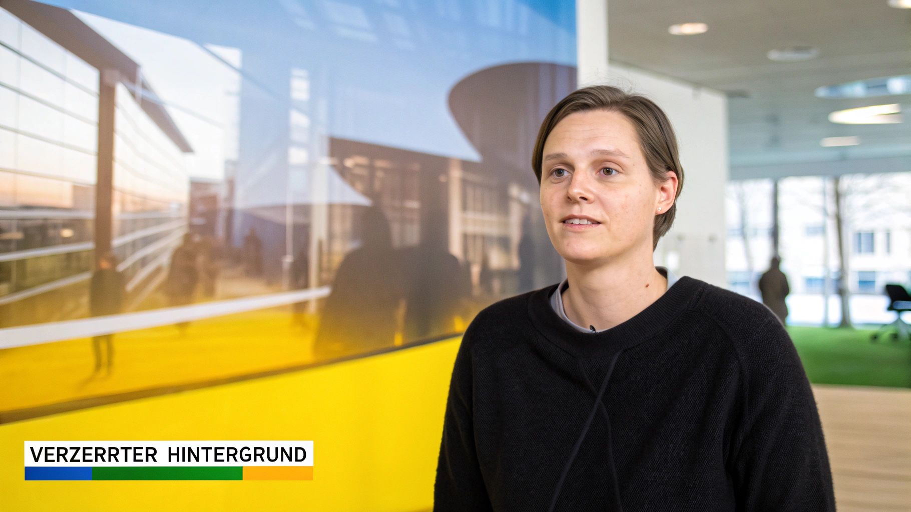 Lenkt ab: Der Blick des Betrachters wird von den KI-Artefakten im Hintergrund angezogen, anstatt sich auf den Bewerber zu konzentrieren.