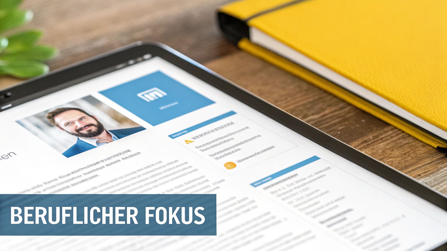 Eine gute Headline ist prägnant und informativ. Sie präsentiert Ihre Kernkompetenzen und unterstreicht Ihr Alleinstellungsmerkmal. Vermeiden Sie allgemeine Formulierungen. Konzentrieren Sie sich stattdessen auf konkrete Aussagen über Ihre Fähigkeiten und Ihren Mehrwert für potenzielle Arbeitgeber oder Kunden.